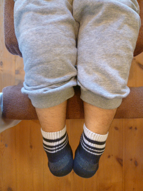 ベッドにうつ伏せに寝て自然にした状態で、かかとの位置を確認します。